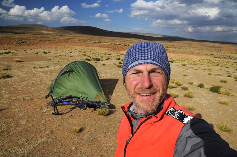 Das lächeln für’s Foto viel mir schwer. Den ganzen Tag heftigen Gegenwind und Nachts Temperaturen unter minus 10 Grad. Spätestens hier saß auch meine Frisur nicht mehr so ganz.